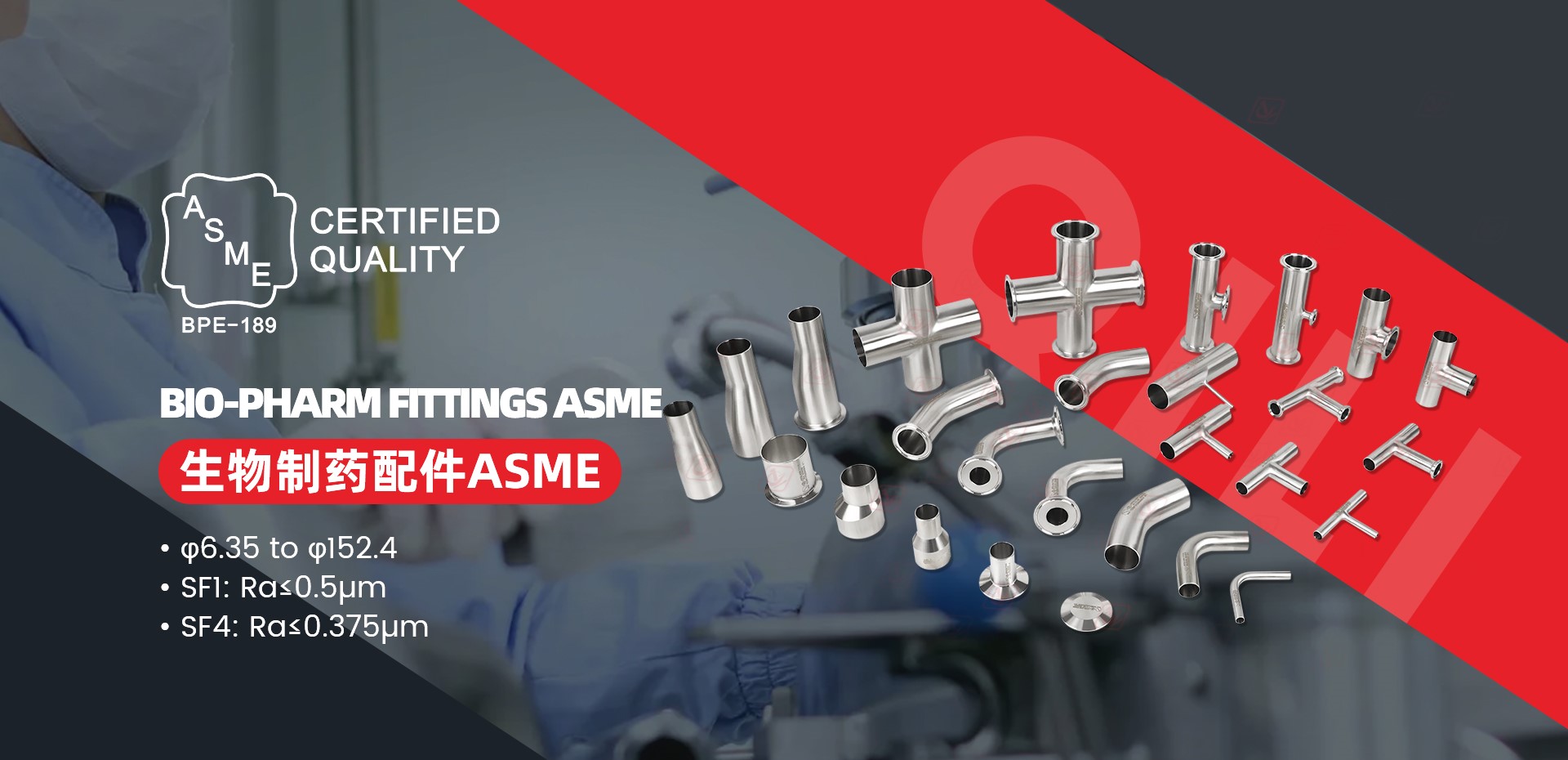 主要产品有:卫生级阀门,管件,泵,控制阀及各种管道连接件等。产品广泛适用于制药、饮料、乳制品、啤酒、生物化工等领域。